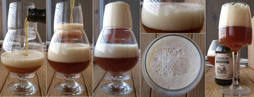 Пенится умеренно. что позволило наполнять бокал с большим размахом =), пенная шапка кремовая, густая и мелкодисперсная, достаточно стойкая... Пиво прозрачное, красивый рыжевато-коричневый/чайный цвет...
