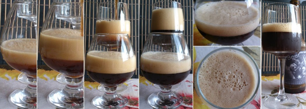 Пенная шапка ооочень обильная), вишневые косточки устроили своеобразный сюрприз)), в итоге сразу бутылку разлить не смогла, и доливала с сорвавшимся со дна дрожжевым осадком… Пена коричнево-кремовая, довольно стойкая…